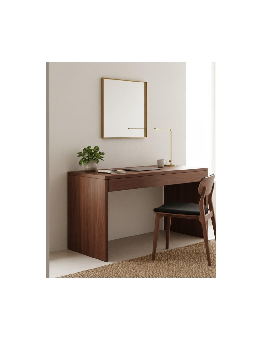 Le bureau Atelier a été pensé pour les esprits créatifs et les professionnels exigeants. Son large plateau offre une surface de travail généreuse, tandis que ses deux tiroirs dissimulés permettent de ranger fournitures et documents en toute discrétion. On apprécie particulièrement le passage de câbles intégré qui libère l'espace visuel. Sa structure en bois clair apporte une luminosité apaisante à votre bureau, favorisant la concentration et la productivité dans un cadre serein.